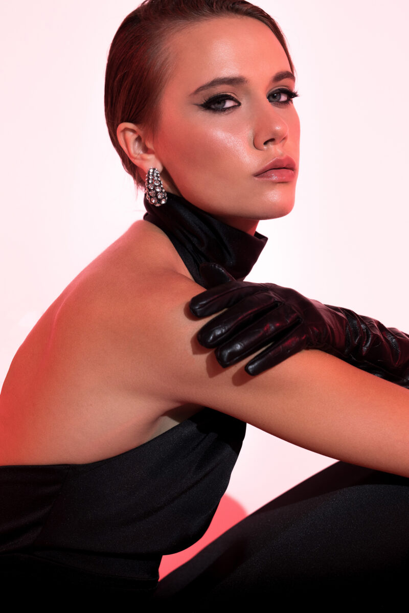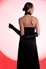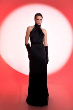 Sophisticated and timeless, this halter-neck evening gown is crafted from smooth satin. Timeless, elegant and designed for formal occasions and red-carpet moments.