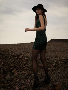 Μίνι φόρεμα με ανοιχτή πλάτη από εντυπωσιακό ύφασμα κεντημένο με παγιέτα