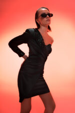 Asymmetric blazer-style mini dress in deep green with scupted fit and sequin detailg. Bold, sleek and modern.