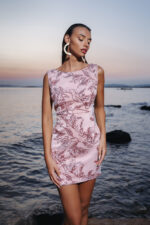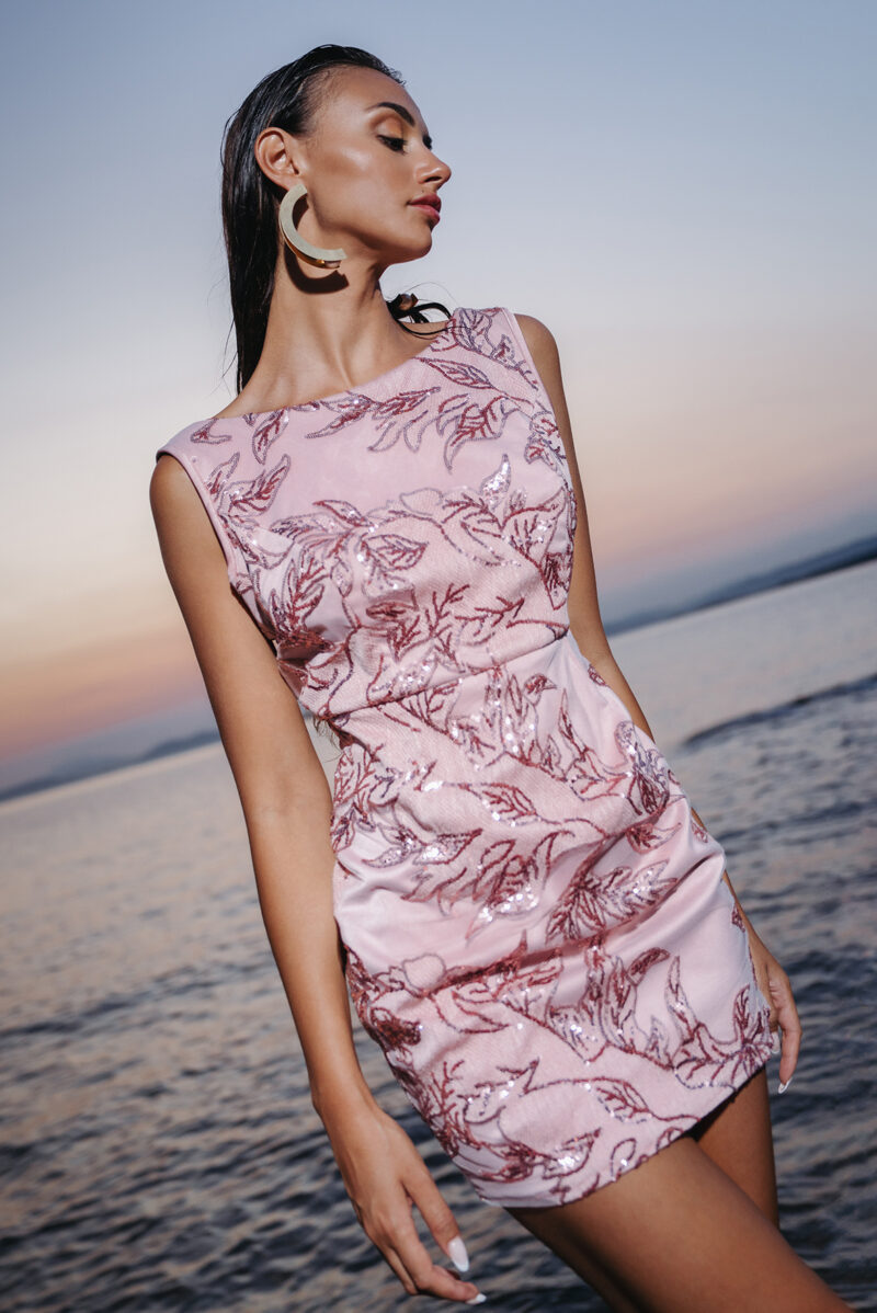 Pixy dress is a perfect choise for cocktail parties, weddings, or night outs. The beautiful fabric with embroidered flowers add touch of feminity and romance.
