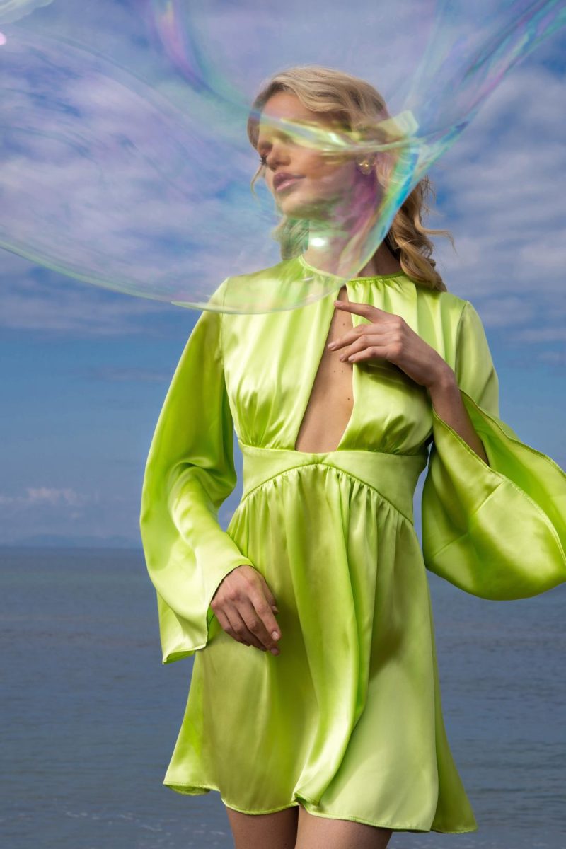 Azrael is a summer satin dress made from 100% silk, it is a luxurious and elegant piece of clothing. Silk is incredibly soft and smooth to the touch and it has a natural sheen that gives it a luxurious appearance.